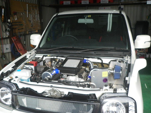 エンジンルームいろんなパーツが装着済み・・まだまだ足りないご様子ですが
