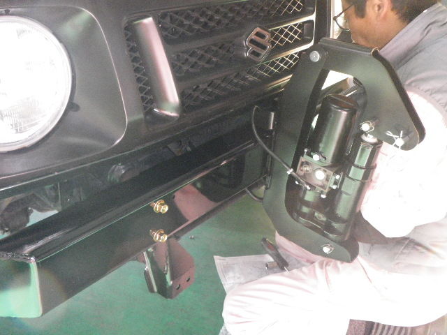 スタッドレスタイヤは勿論ですが、当店では初体験のスノープラウの取り付け。