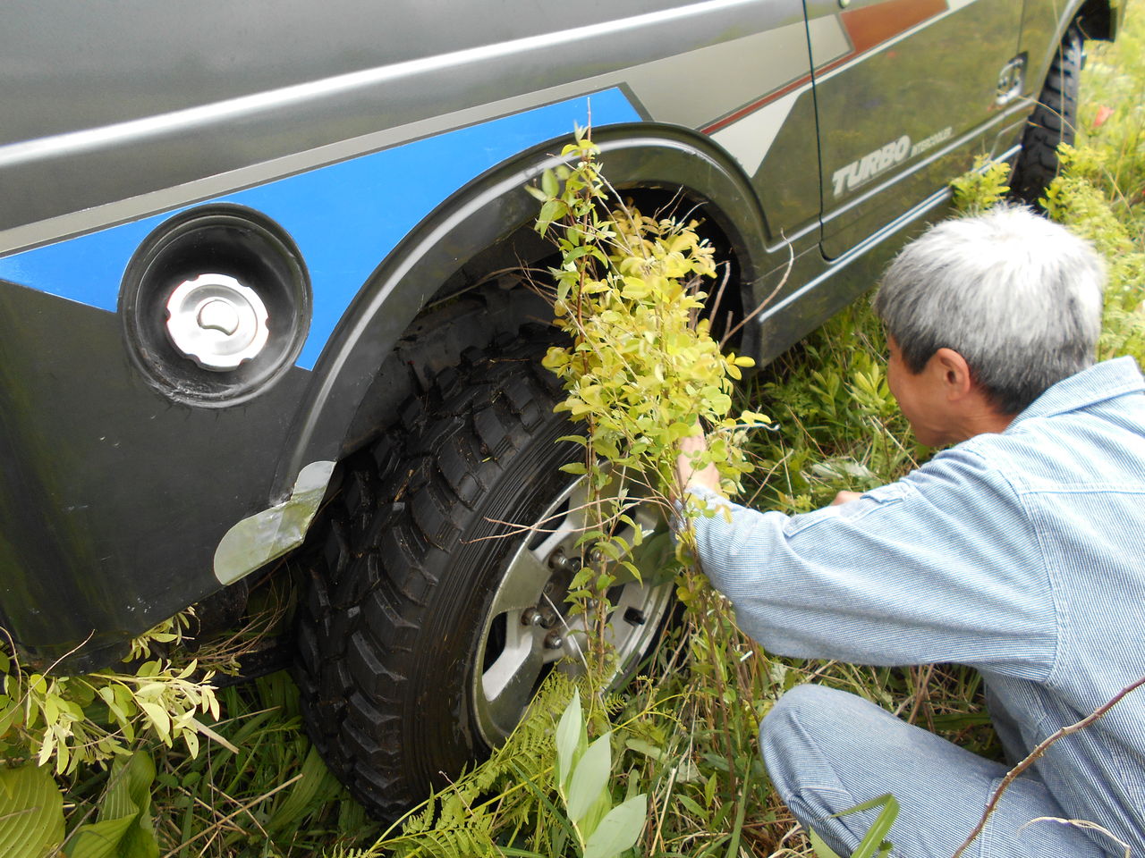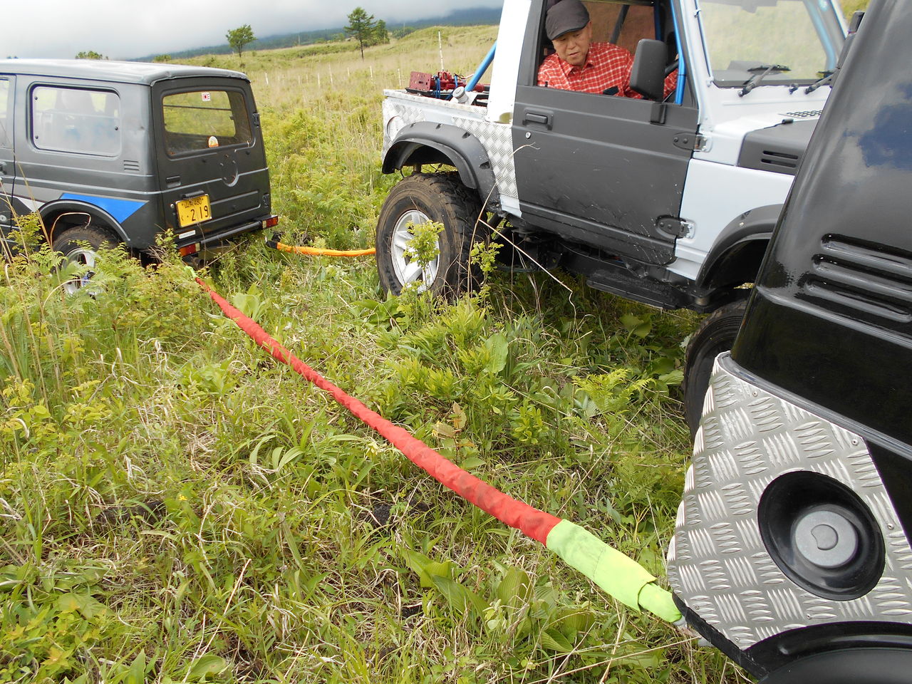 2台で引くも、びくともしませんので奥の手