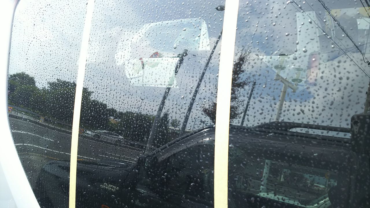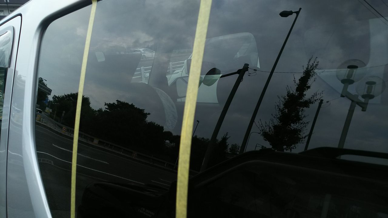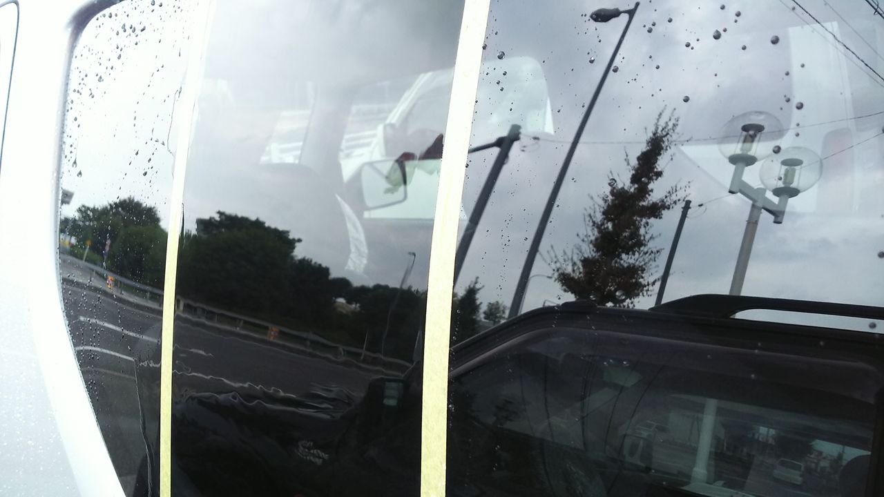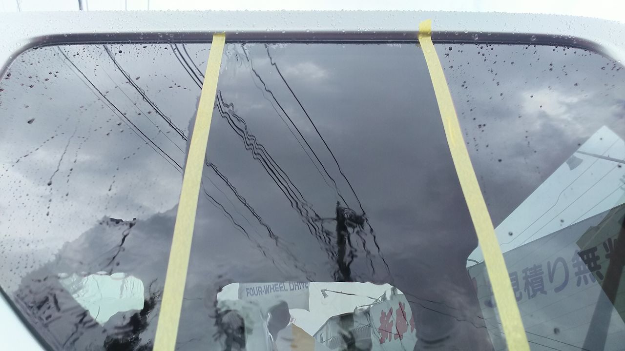この状態は雨が降ってくると下の写真の映り込んだ電線の様に若干外が歪んで見えて、あまり良くありません