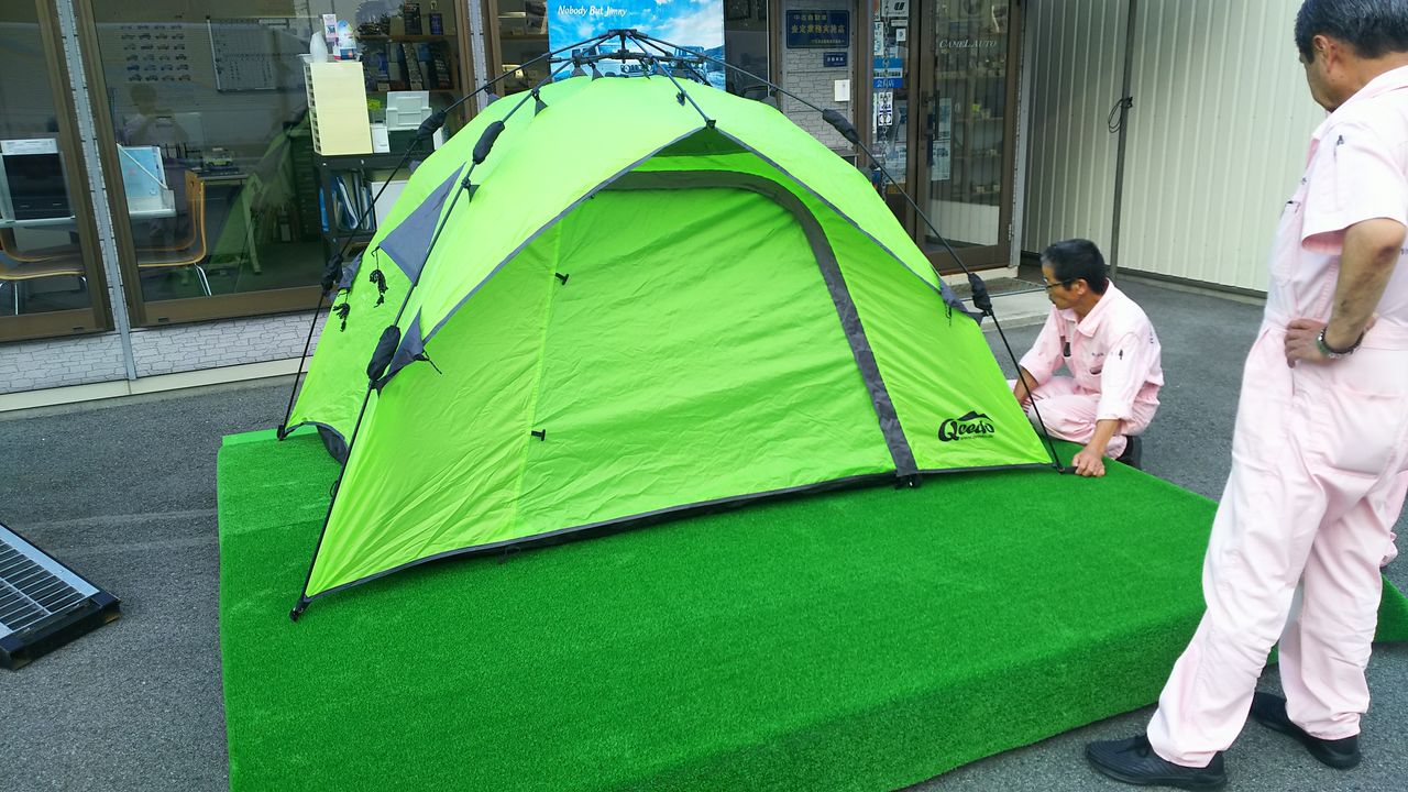 人工芝敷いて、テントのっけて・・・