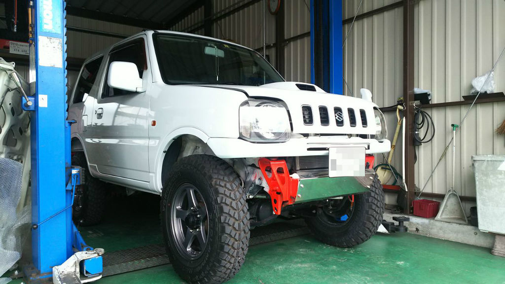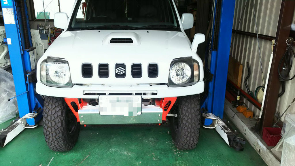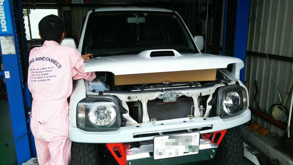これを4型以降のボンネットとグリルが分離したタイプへの変更でS様JB23入庫です