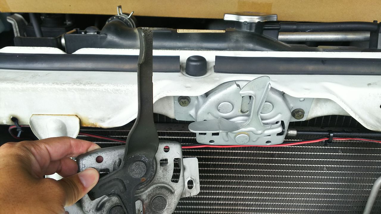 ボンネットのキャッチもチェンジ!手に持っている方がドクロマスク用のキャッチです