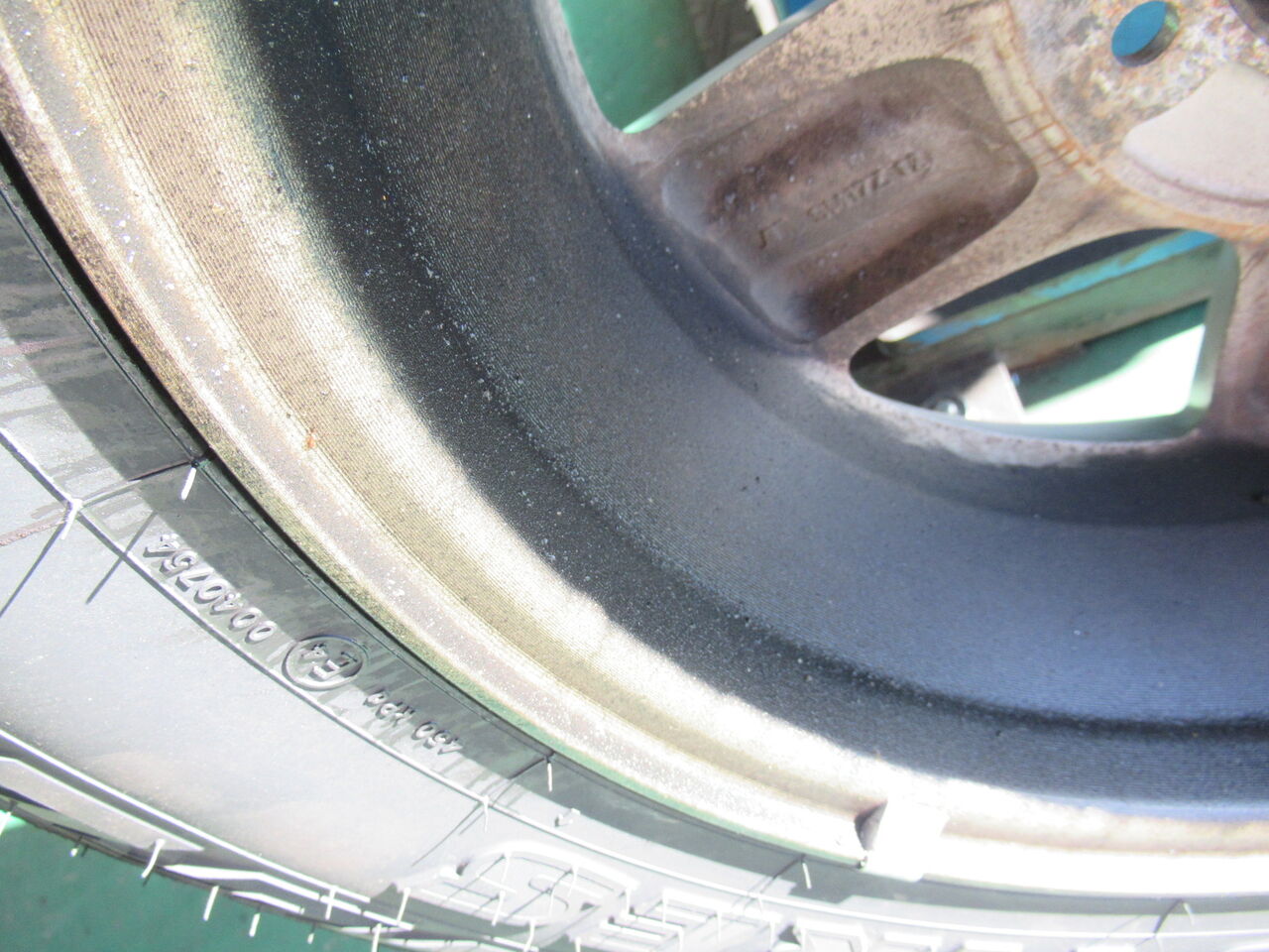 ホイールの裏側は漏れ出したデフオイルまみれです