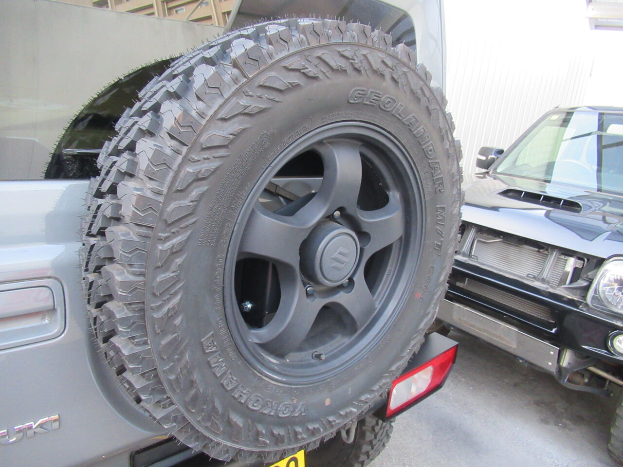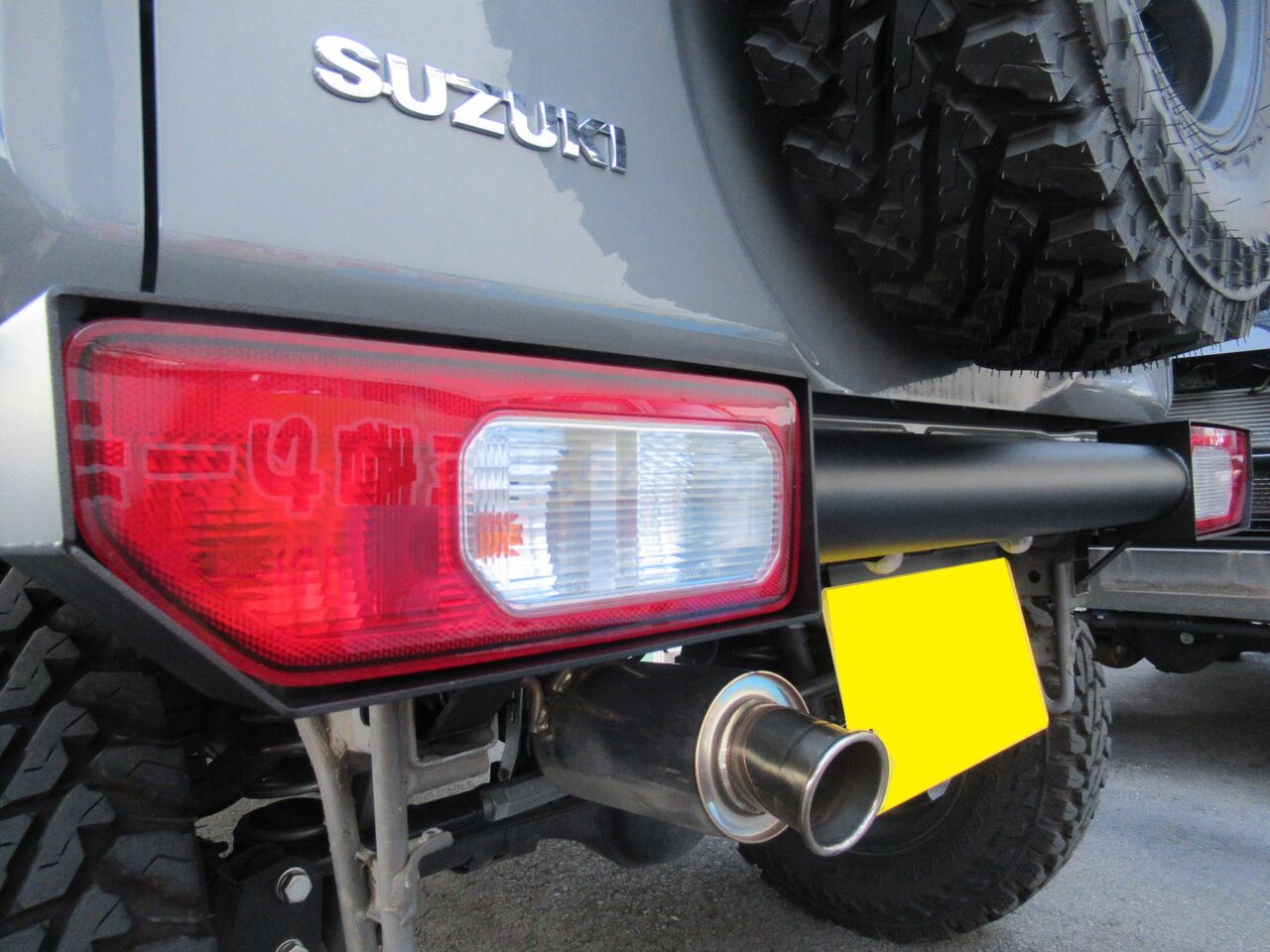 スペアタイヤアップブラケットを使ってバンパーとの干渉を防止します