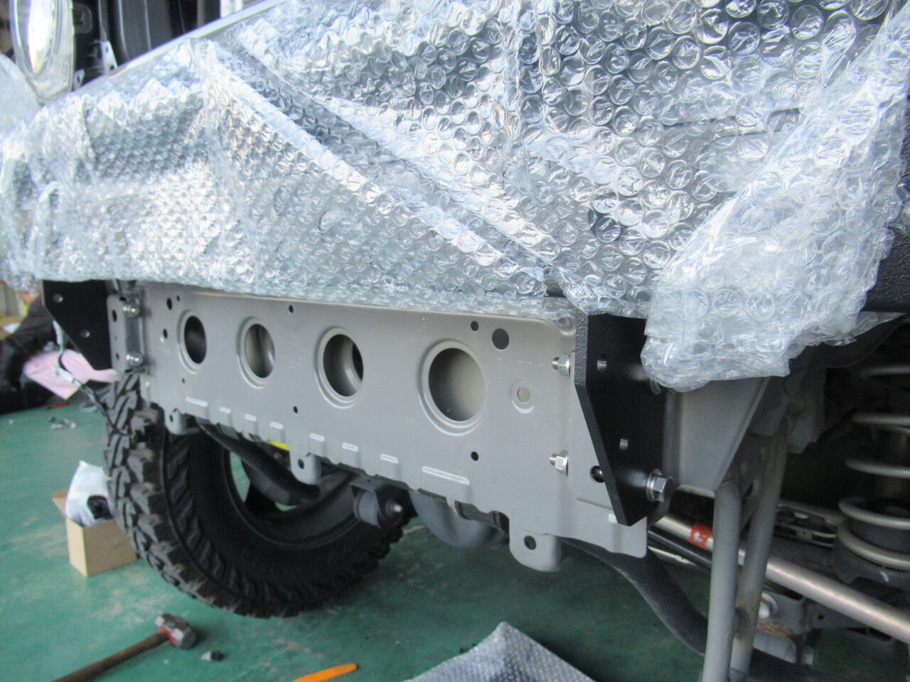 スキッドプレート取り付け中
