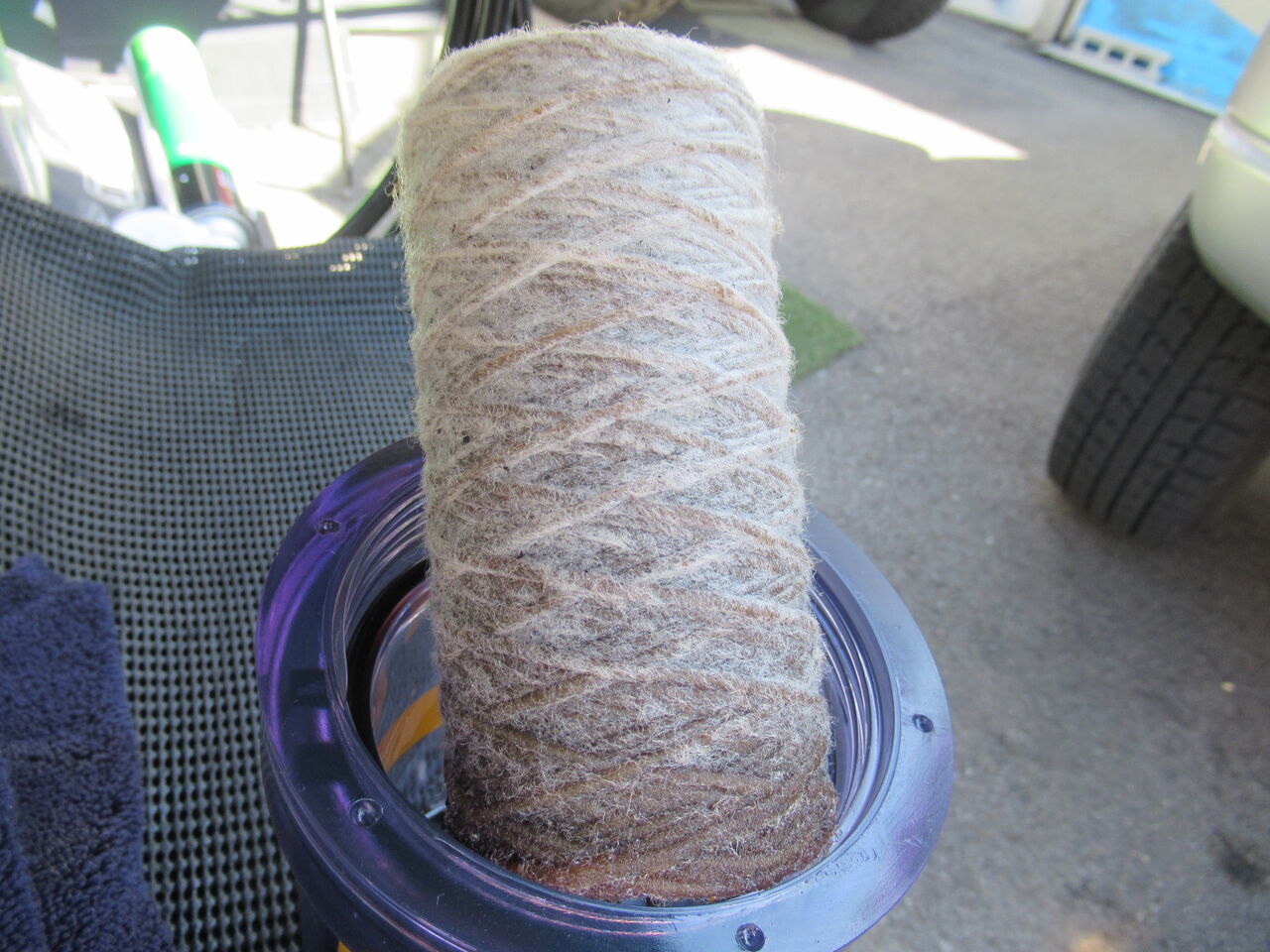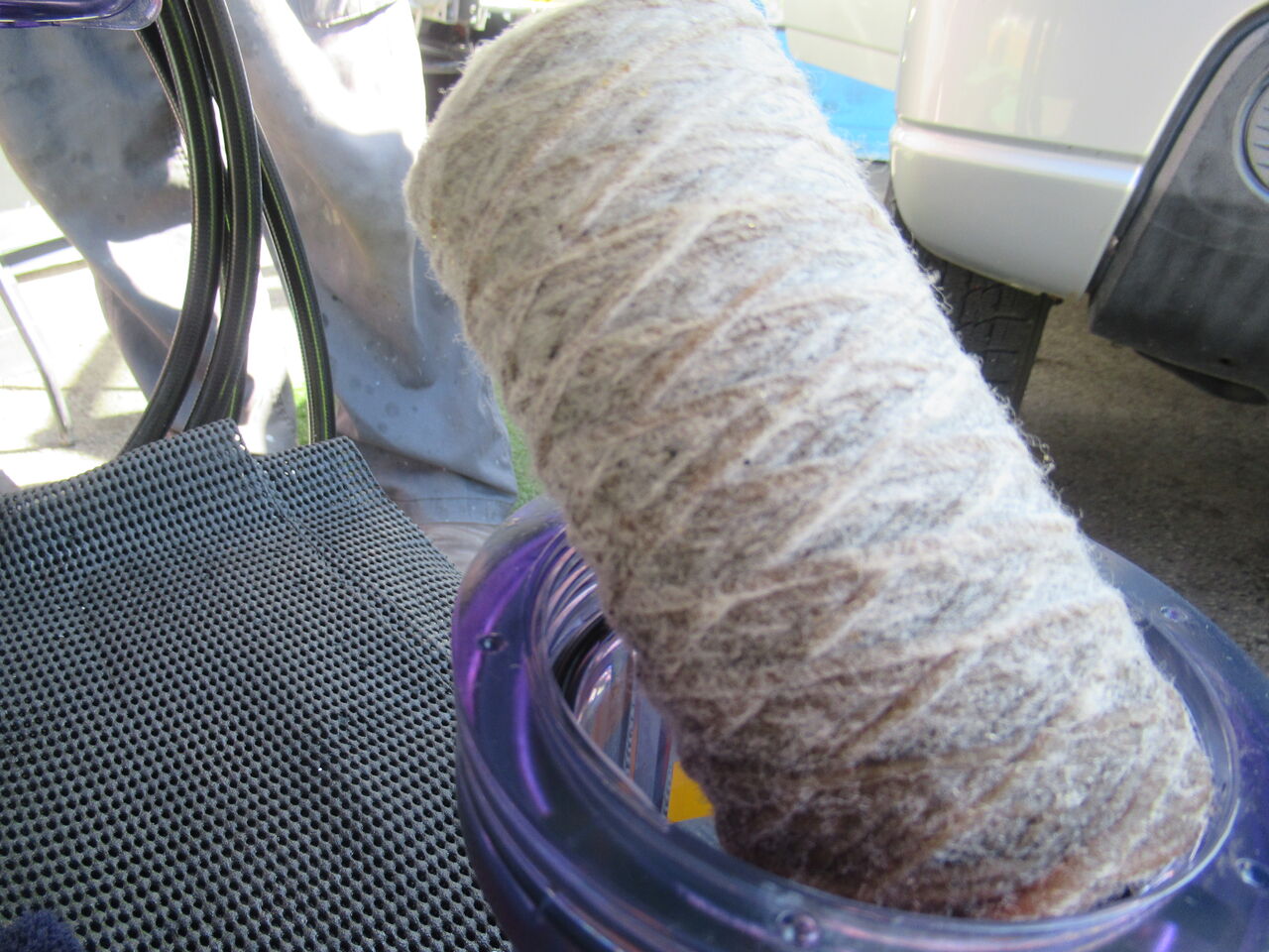 内部洗浄中、循環したオイルがフィルターを通っていきます
