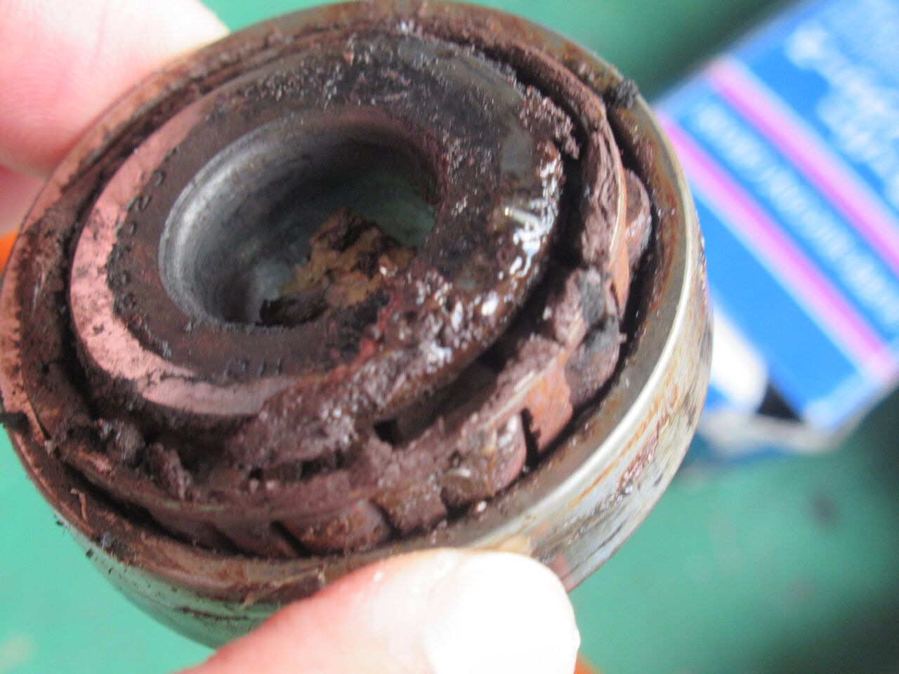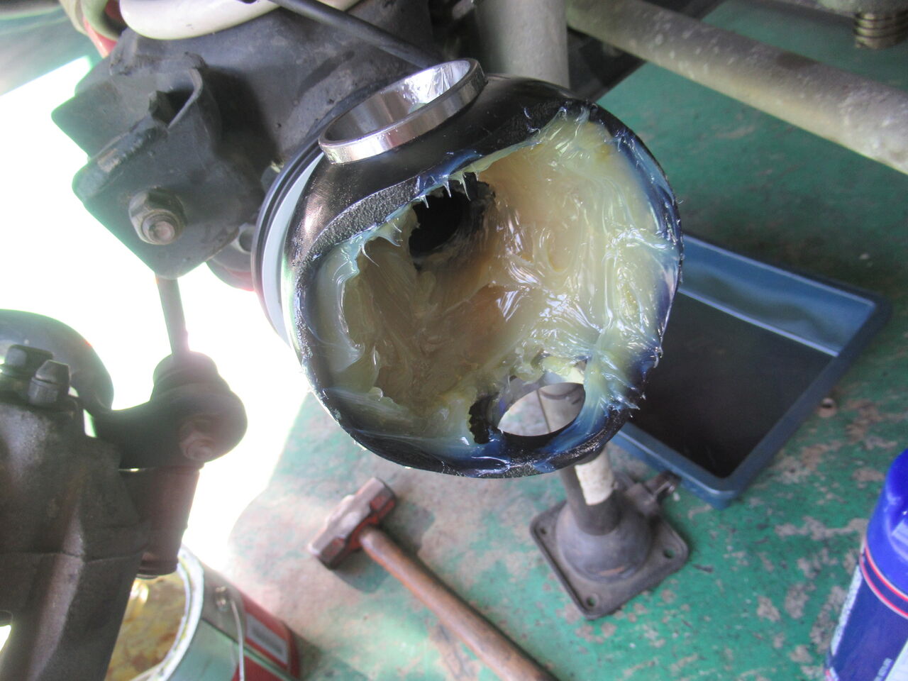 ハブのオイルシールも劣化して漏れたデフオイルがグリスを溶かしています